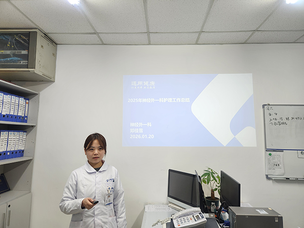 护理组长邓佳雪围绕2025年护理工作重点作总结,协助护士长完成6名新进护理人员的培训带教,科室积极践行“以病人为中心”理念,参与“一点点”服务文化建设与中医适宜技术推广,助力科室荣获《提高护理人员耳穴压豆正确率》品管圈比赛一等奖等荣誉。